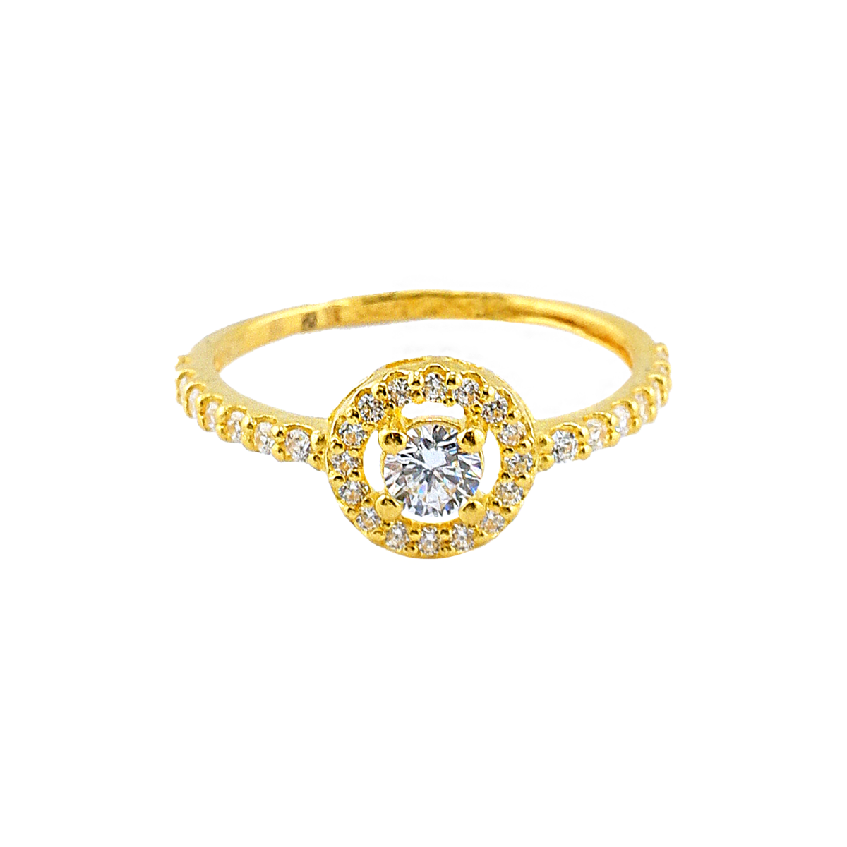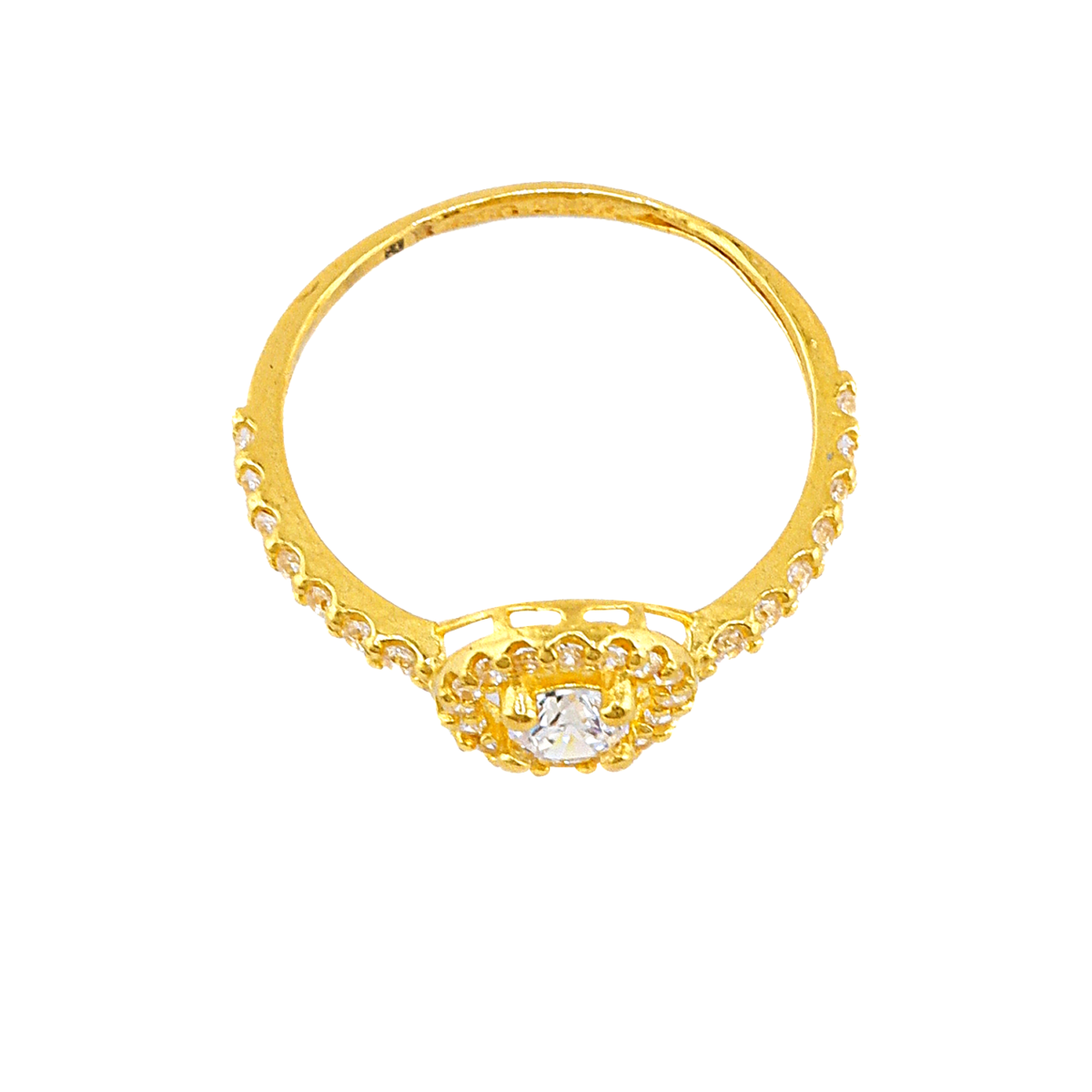 – Anel circular com pedras ao redor, 96,5% ouro, peso meio salung