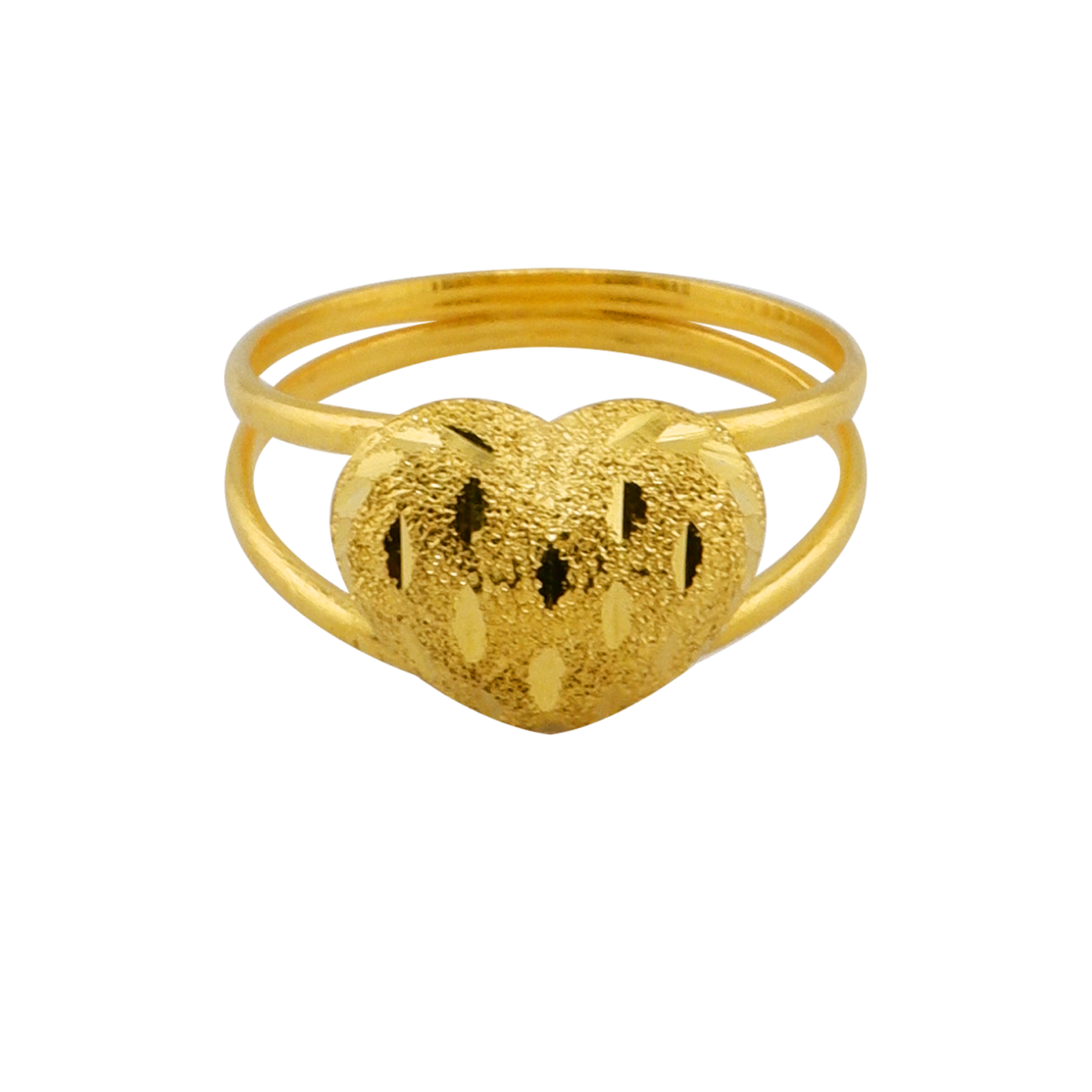 – Anel com design de coração com pequenas pedras, banho branco, 96,5% de ouro, peso ½ tael