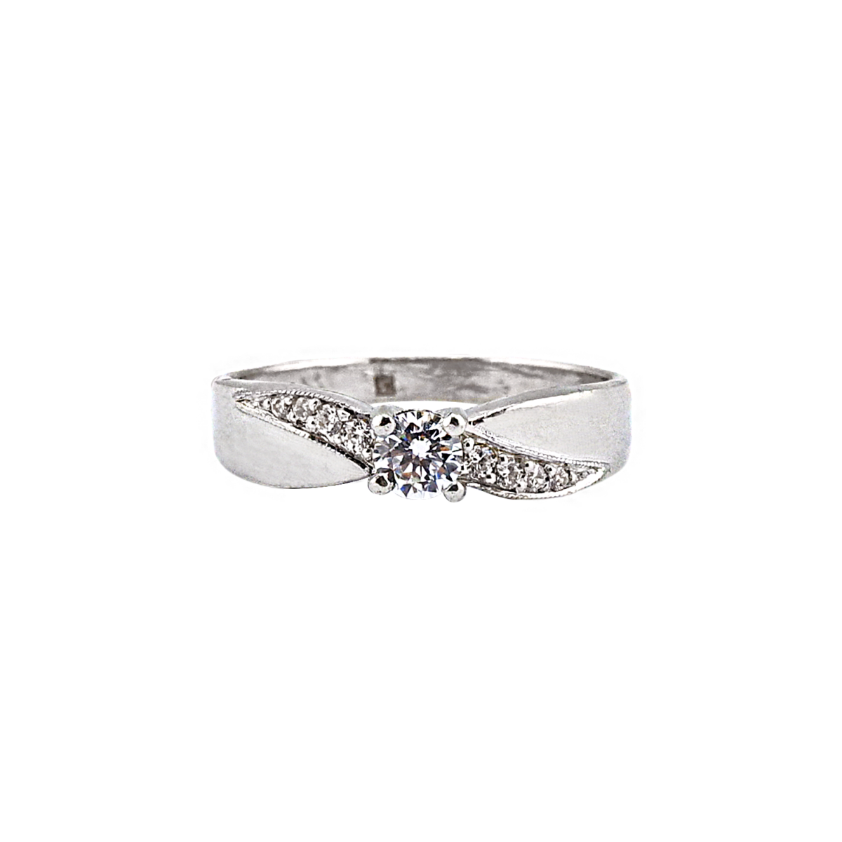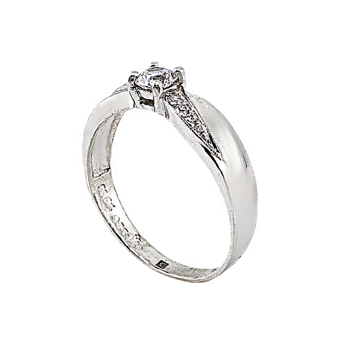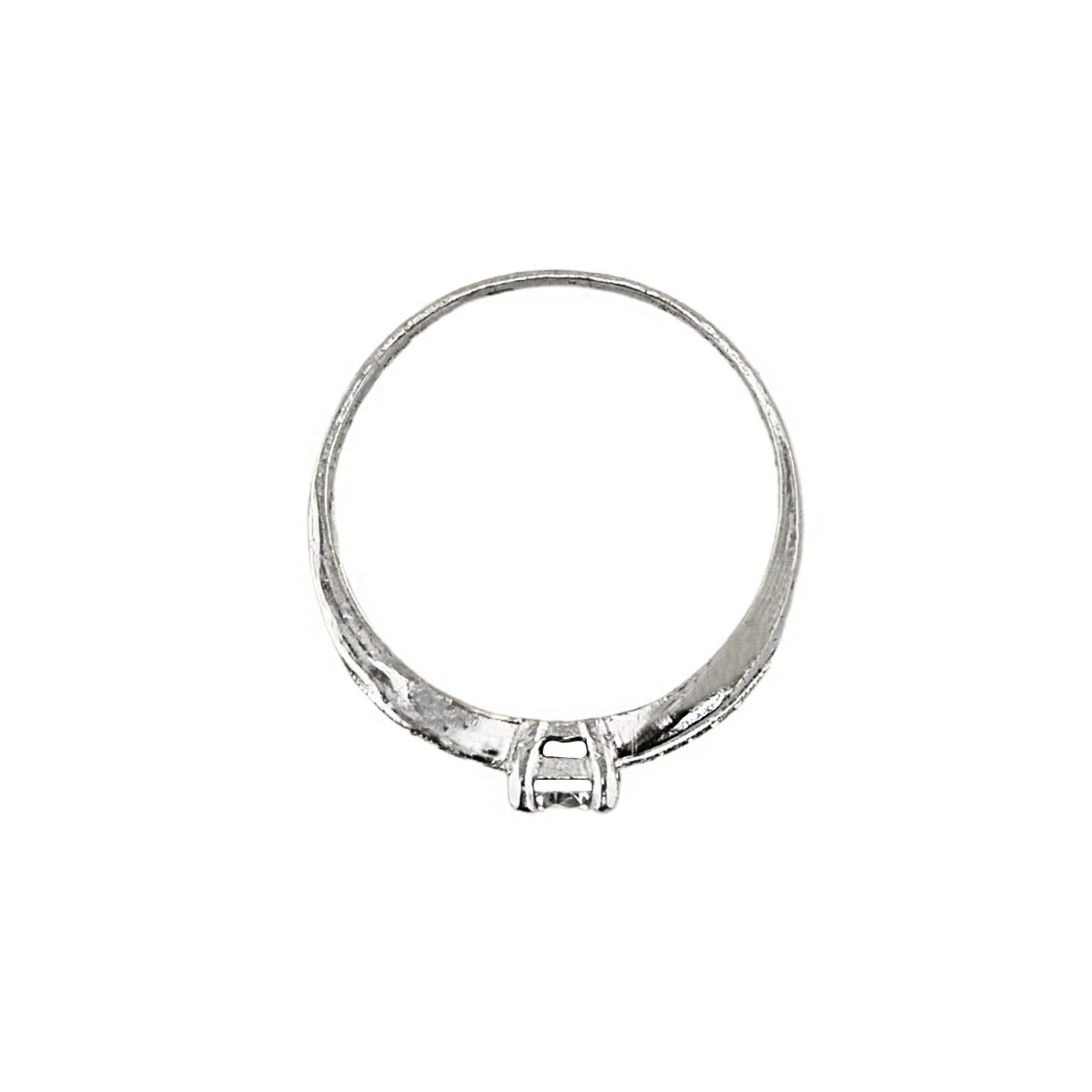 – Anel com design espiral incrustado com pedra, banhado a ródio, ouro 96,5%