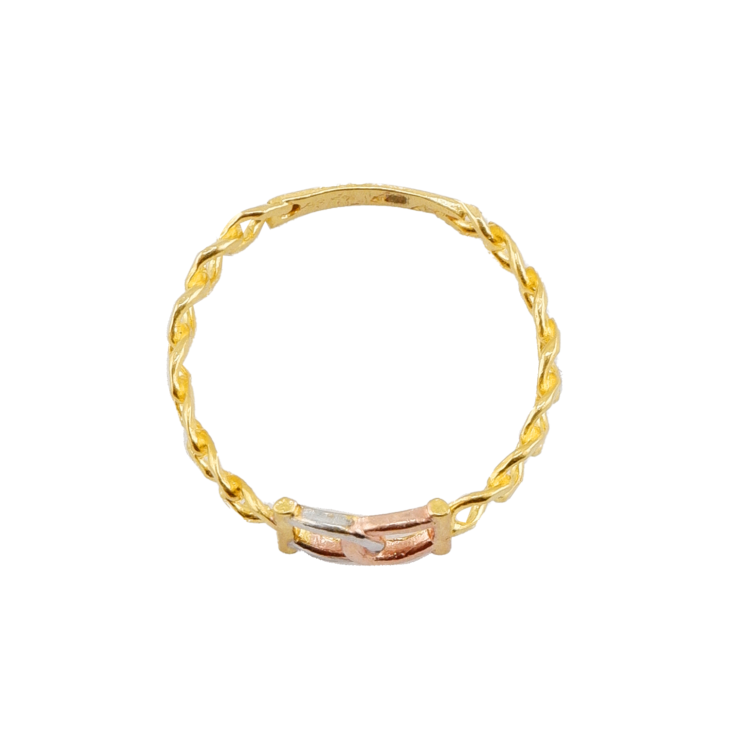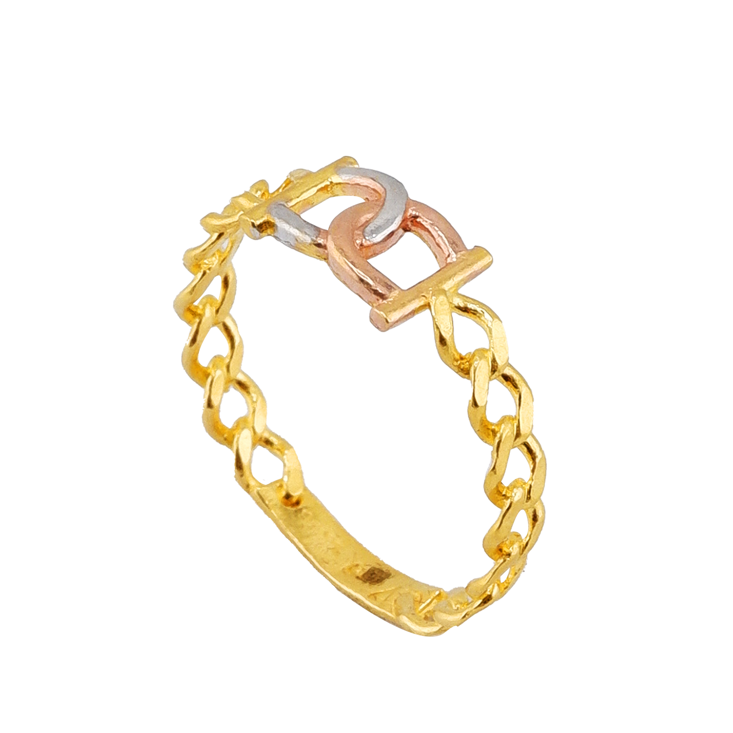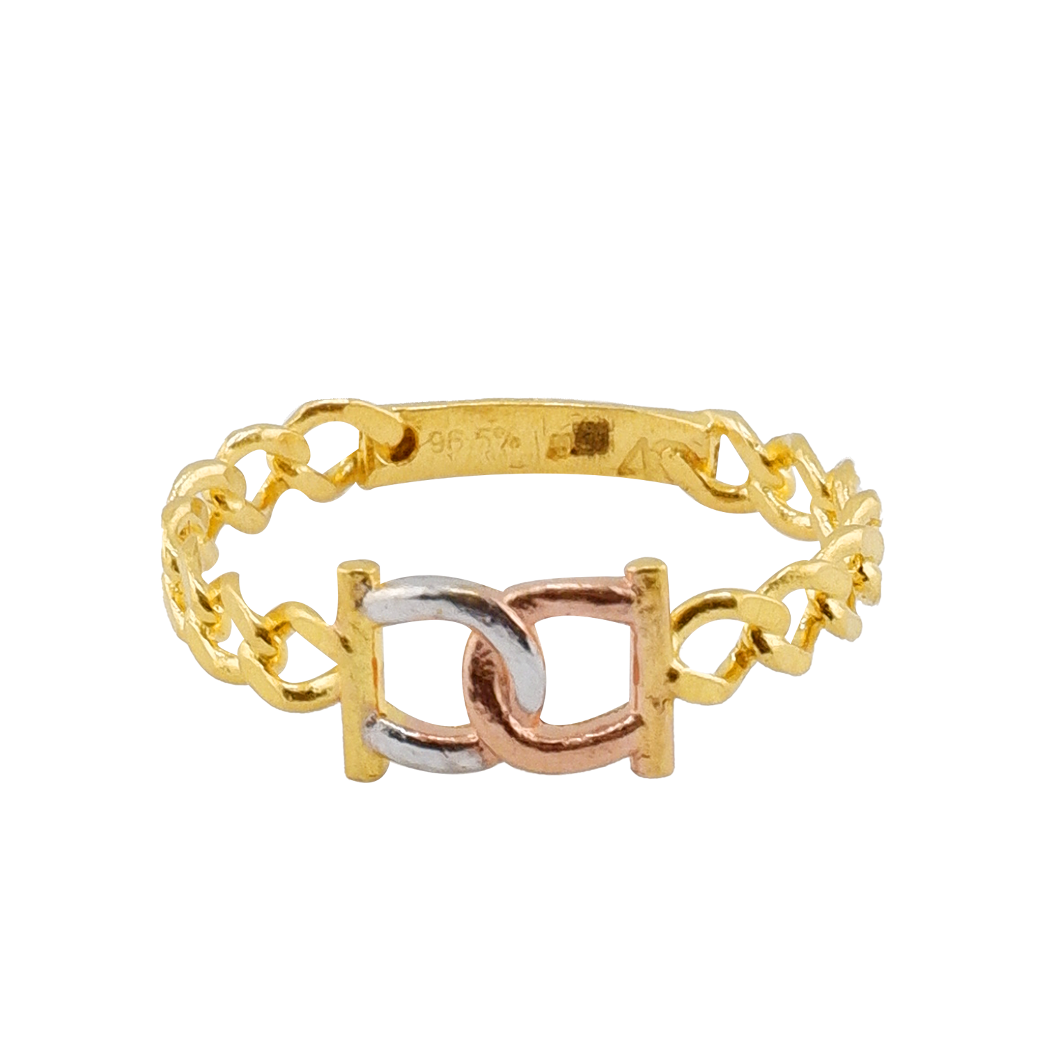 Design: Anel com padrão OC banhado em 3 cores.