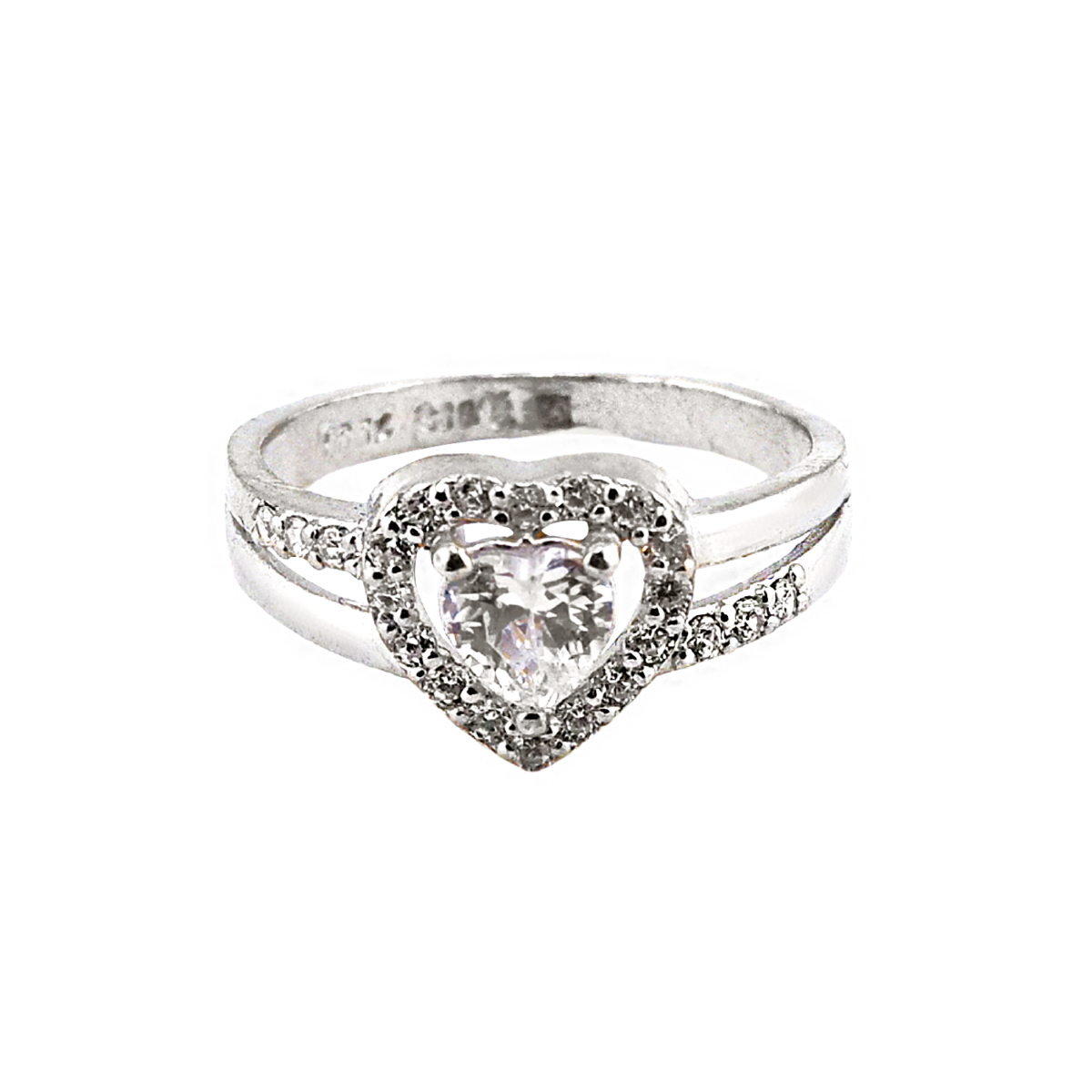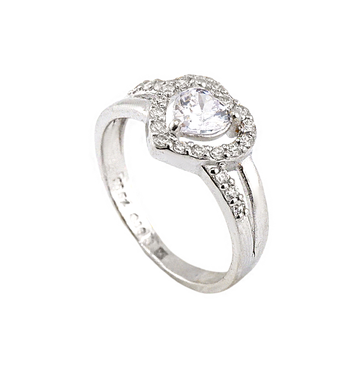 – Anel design de coração com pedras cravejadas, banho branco 96,5%, peso 1 Salung