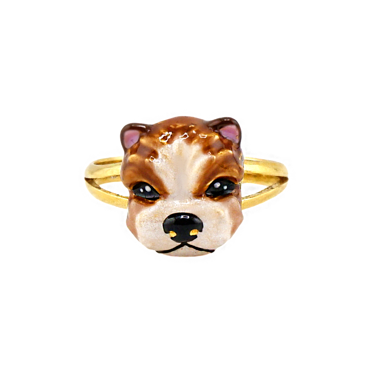 – Anel com desenho de cachorrinho esmaltado, 96,5% ouro, peso 1 salung