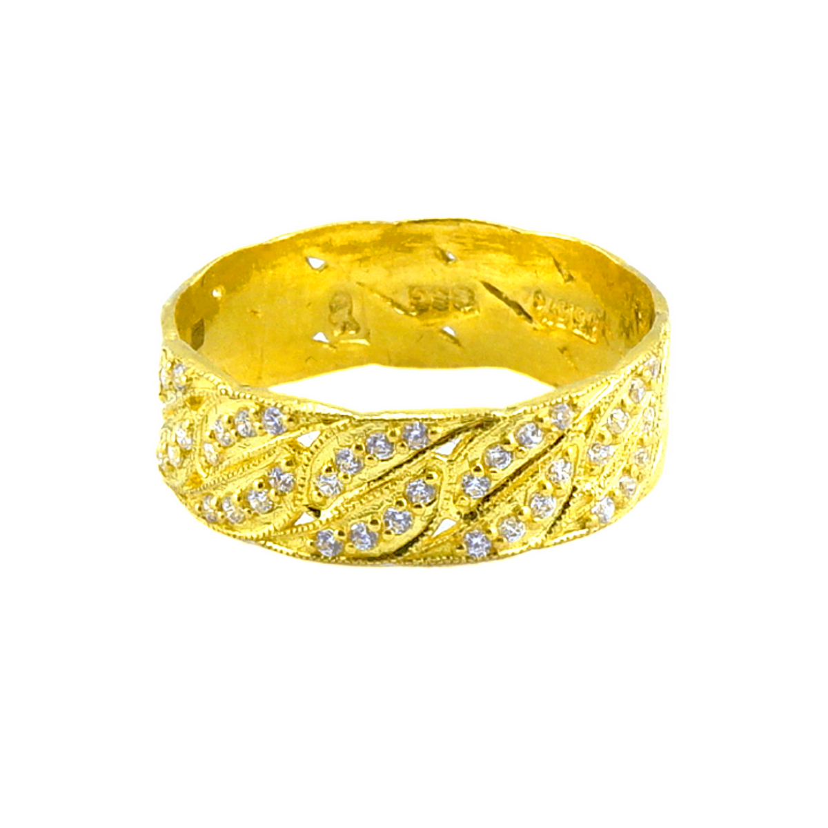 – Anel Folha com pedras, 96,5% ouro, peso 1 baht