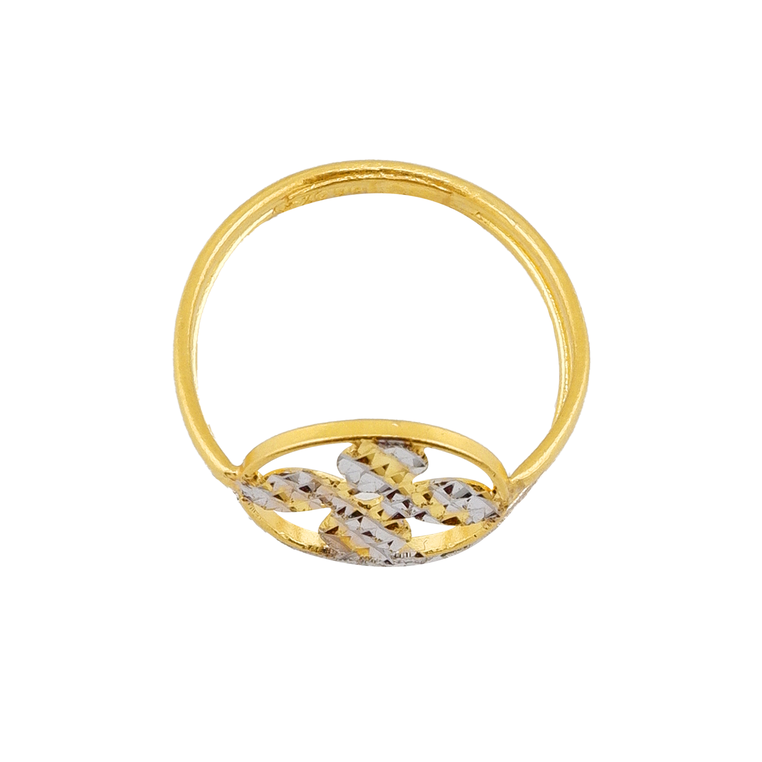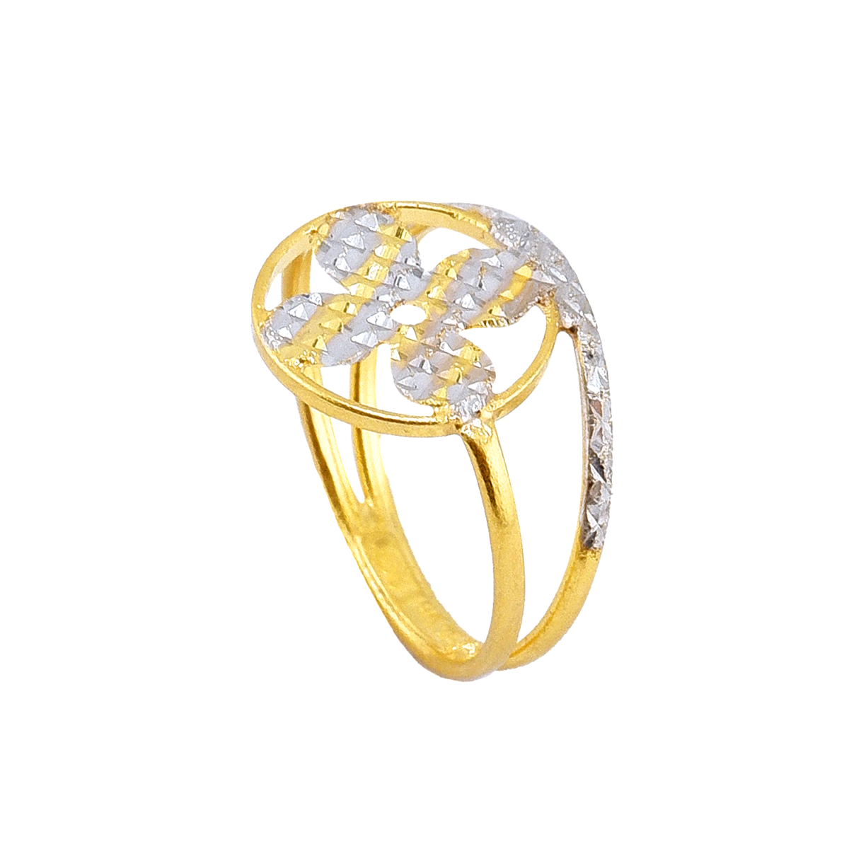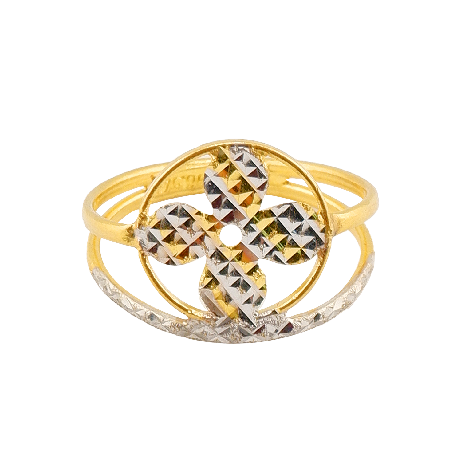 Anel com design floral, acabamento bicolor, peso ½ salung